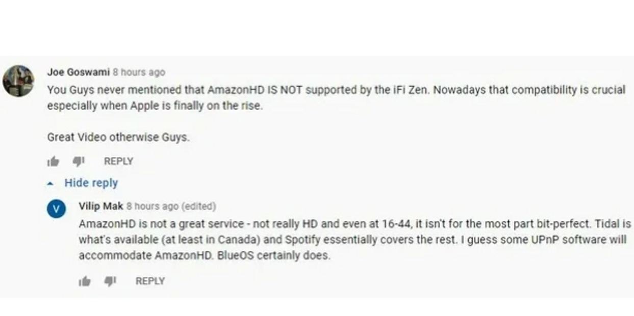 By mistake, a response posted to AECanada was under my real name and not "Joey G's Audio Channel" which is where all my Audio related comments on YouTube are shown under.