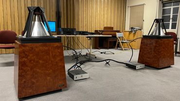 We were given the royal treatment by Eric Scheter, chief engineer. Eric was unflappable as he fielded our many questions. A beautiful set up with the all their new high tech mastering studios. 400 lb doors. Who knew Hafler made powered monitors?